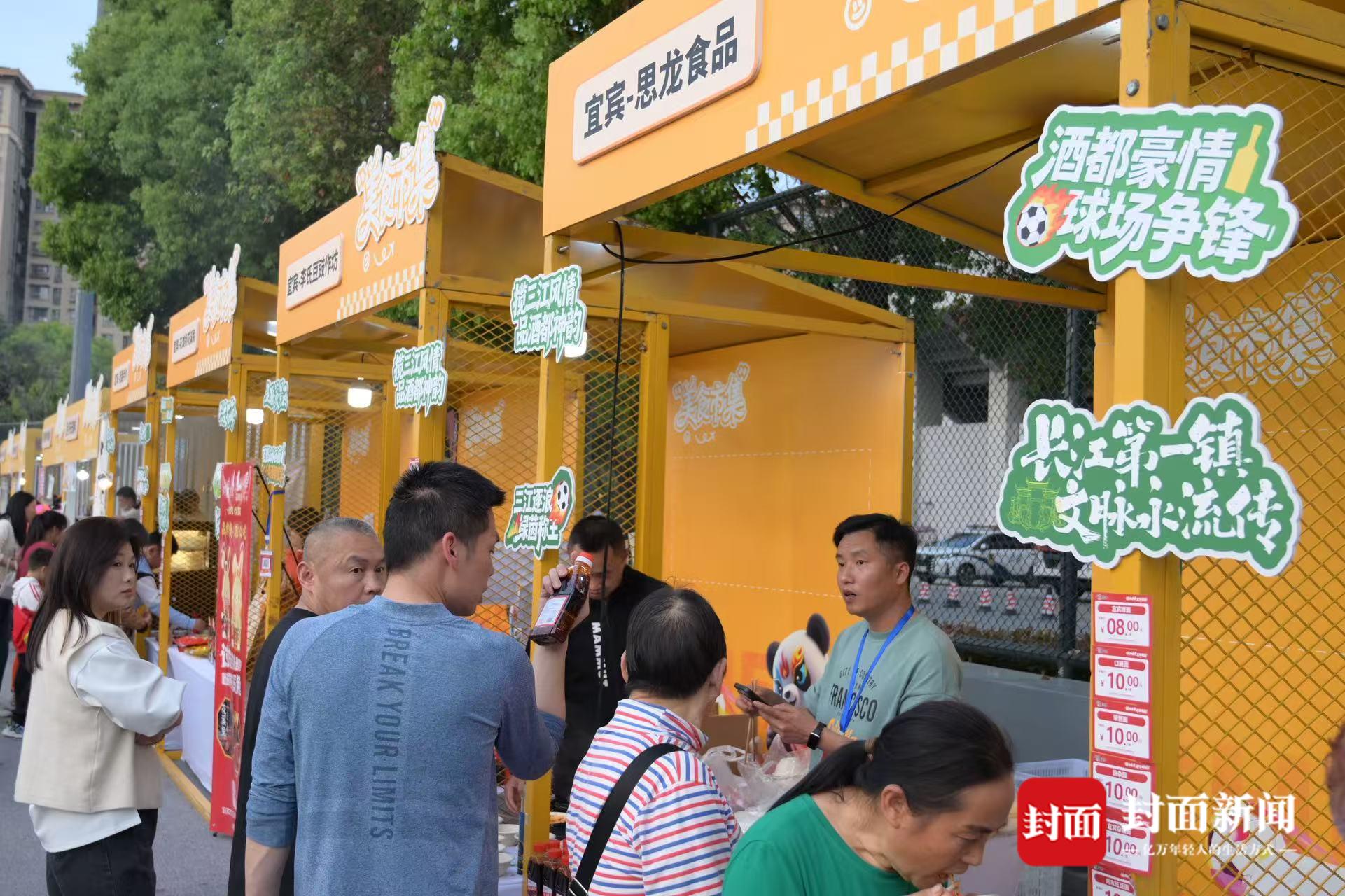 赛场内激战正酣,赛场外的“川超嘉年华”同样热火朝天。恰逢清明假期第一天,成都迎来晴好天气,虽正午气温较高,仍难掩球迷与市民的热情。宜宾燃面档口前人流络绎不绝。“今天在场销售的宜宾燃面,都是凌晨5点从宜宾出发,9点就已经摆出来了,下午4点左右人流就开始多起来。”宜宾思龙食品负责人魏安华向记者介绍,“这也是我们宜宾队在总决赛阶段第一次来成都客场比赛,作为宜宾美食代表的宜宾燃面必须‘扎起’。”