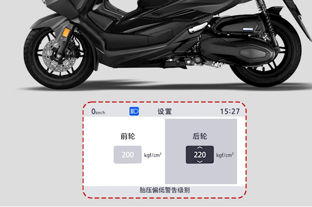 配比5段可调手把加热,提升冬季骑行舒适性,为北方用户与长途摩旅爱好者提供实用保障,并升级配备TPMS胎压监测,实时监控前后轮胎压,异常情况及时报警,显著提升骑行安全性。